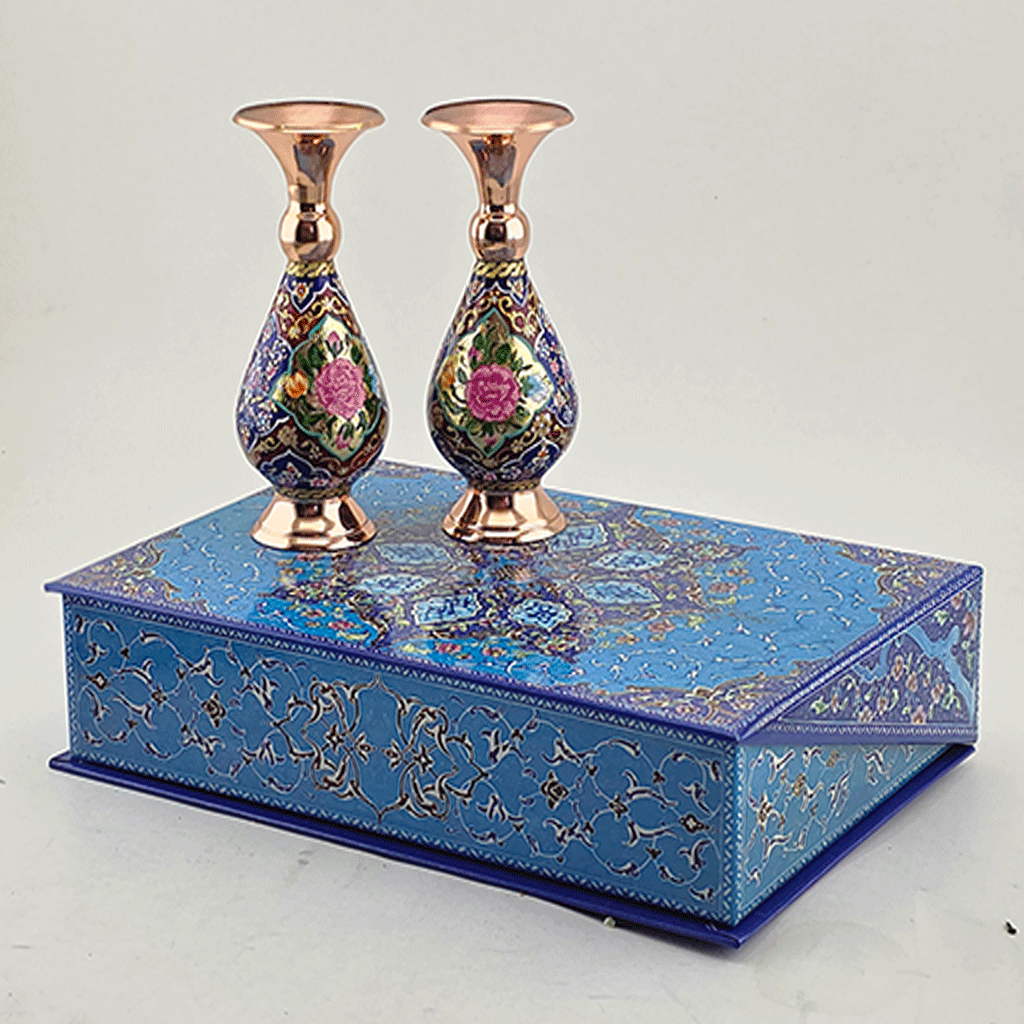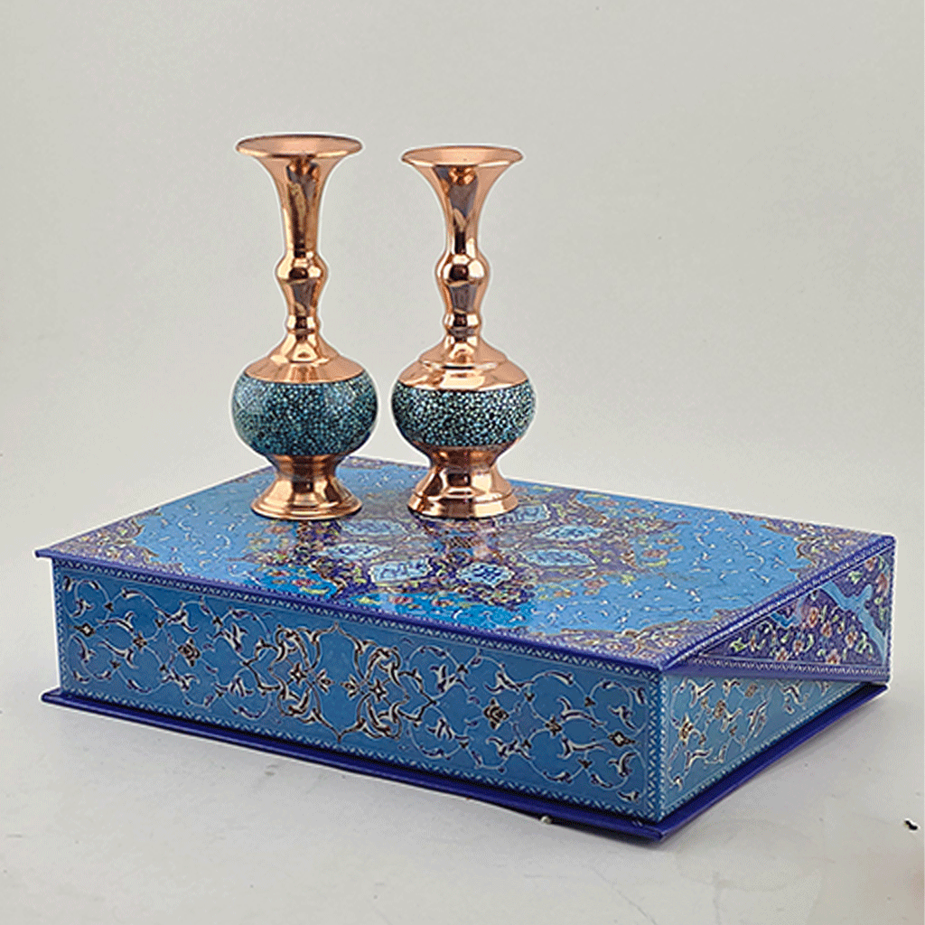 دو عدد گلدان مس و پرداز با جعبه هارد باکس در سه سایز