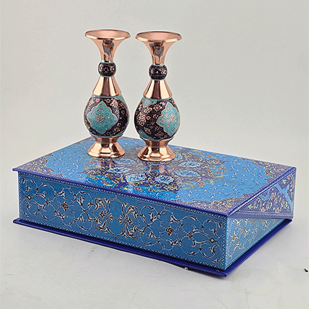 دو عدد گلدان ورق طلا با جعبه چوبی