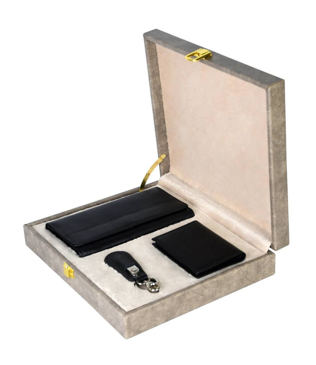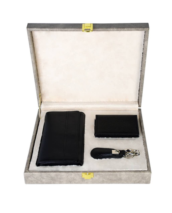 پک چرمی سوفیا با رنگ مشکی کلاسیک و طراحی شیک، انتخابی ارزشمند برای هدایای مدیریتی و سازمانی است. این مجموعه شامل کیف پول چرمی، جاکارتی چرمی و جاسوئیچی چرمی بوده که با ترکیبی هماهنگ و کاربردی، هدیهای لوکس و ماندگار برای مدیران و مشتریان ویژه محسوب میشود و جلوهای از سلیقه و اعتبار برند شما را به نمایش میگذارد.