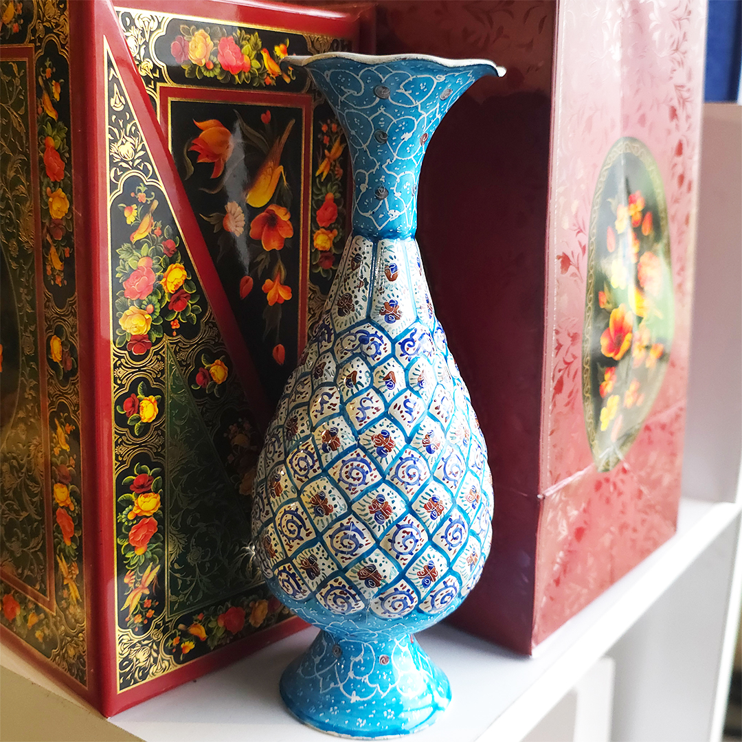 گلدان میناکاری دستساز از مجموعه آثار صنایع دستی هنرمندان آپادانا، تلفیقی از هنر اصیل ایرانی و زیبایی ماندگار است. نقوش ظریف میناکاری و رنگهای درخشان بهکاررفته در این اثر، جلوهای چشمنواز به فضای دکوراسیون میبخشد و آن را به انتخابی مناسب برای چیدمان سنتی و کلاسیک تبدیل میکند. این گلدان علاوه بر ارزش هنری، گزینهای ایدهآل برای هدیهای فاخر و ماندگار از صنایع دستی ایران به شمار میرود.