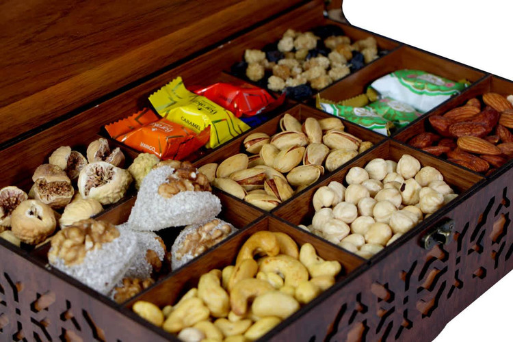 در این پک ترکیبی از آجیلهای باکیفیت، خشکبار و تنقلات خوشمزه در بخشهای جداگانه داخل جعبهای چوبی با طراحی سنتی و زیبا قرار گرفته است؛ چیدمانی منظم و جذاب که هم برای پذیرایی و هم برای هدیه دادن انتخابی شایسته محسوب میشود.
