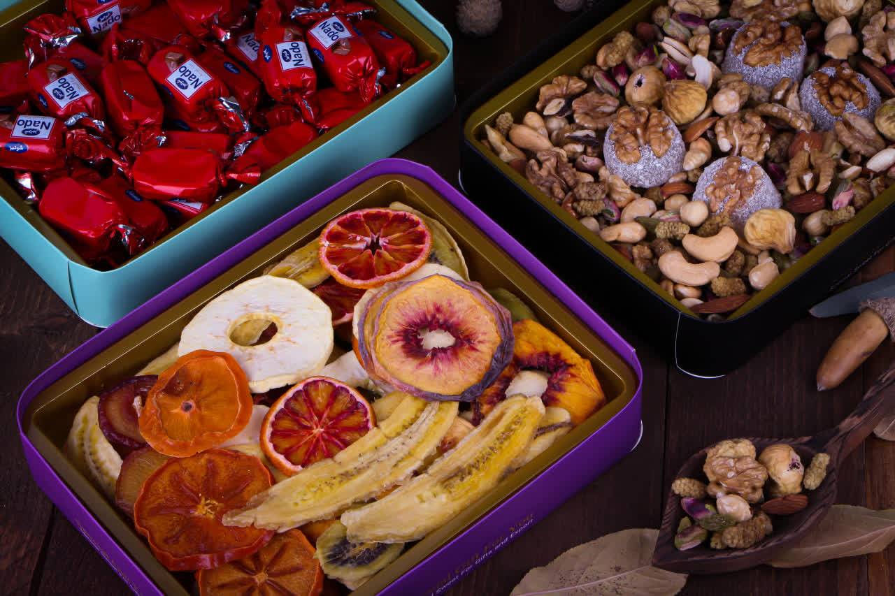 در این مجموعه، چند ظرف فلزی رنگی و هماهنگ قرار گرفته که هرکدام با بخشی از خوراکیهای منتخب از جمله آجیل مخلوط، میوههای خشک اسلایسشده و شکلات تکمیل شدهاند. تنوع طعمها در کنار چینش منظم و چشمنواز محتویات، این پک را به گزینهای مناسب برای پذیرایی و هدیه تبدیل میکند. تمامی ظروف درون جعبه فلزی نفیس با طراحی الهامگرفته از هنر ایرانی قرار گرفتهاند که جلوهای خاص و ماندگار به این مجموعه میبخشد.
