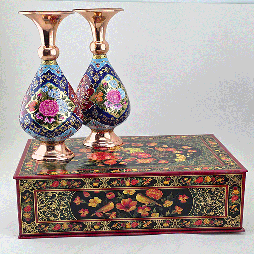 این ست ارزشمند شامل دو گلدان نقاشی شده همراه با ورق طلا با پایه مسی و جعبه نفیس با طراحی اختصاصی، توسط مجموعه آپادانا تولید شده است. ترکیب هنر ایرانی (نقاشی روی مس) و بستهبندی فاخر، این هدیه را به انتخابی ایدهآل برای شرکتها، مدیران و مناسبتهای ویژه تبدیل کرده است. هر محصول آپادانا با رعایت استانداردهای کیفیت و زیبایی، اصالت و هویت هنر دستساز ایرانی را در محیط کار و سازمان شما به ارمغان میآورد.