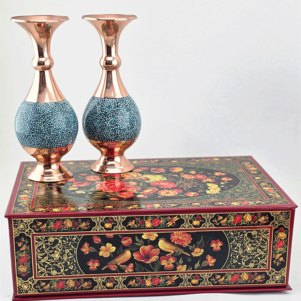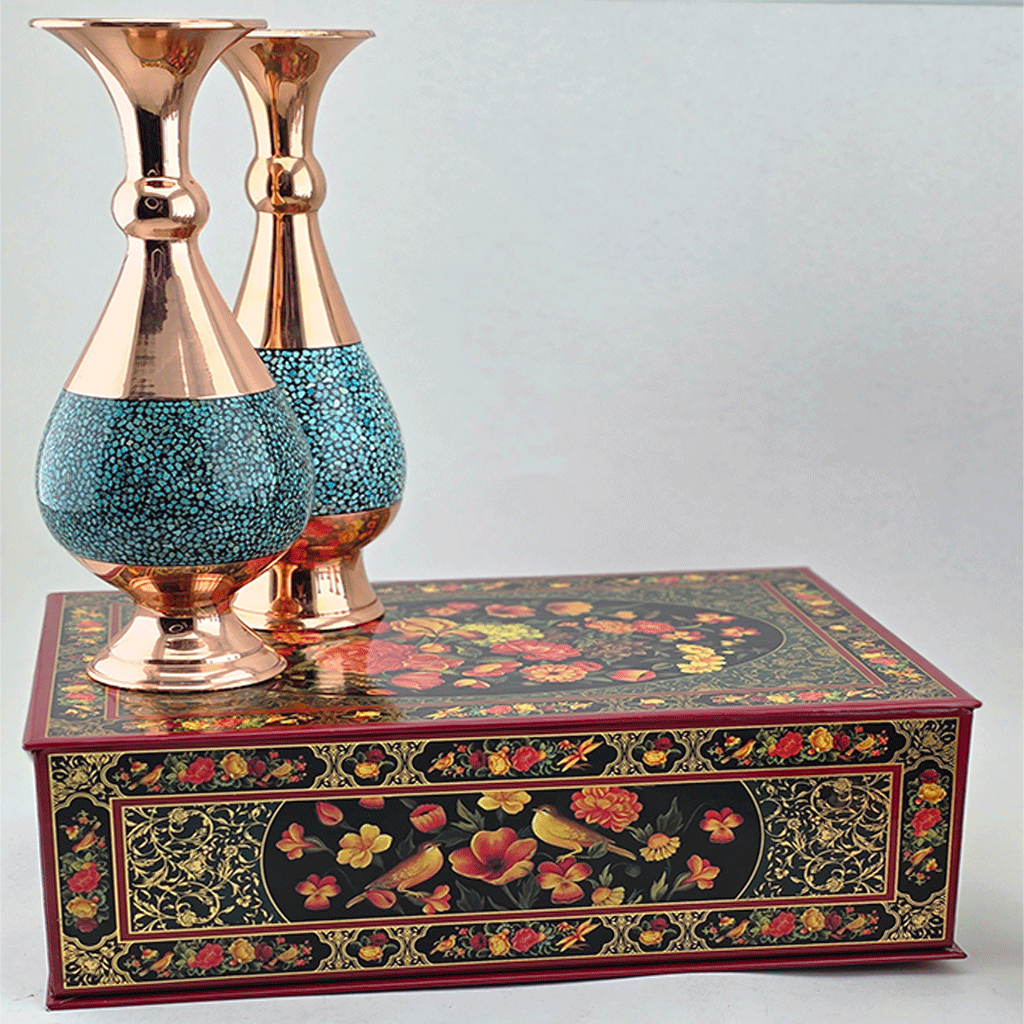 این ست ارزشمند شامل دو گلدان فیروزه کوبی با پایه مسی و جعبه نفیس با طراحی اختصاصی، توسط مجموعه آپادانا تولید شده است. ترکیب هنر ایرانی (فیروزه کوبی روی مس) و بستهبندی فاخر، این هدیه را به انتخابی ایدهآل برای شرکتها، مدیران و مناسبتهای ویژه تبدیل کرده است. هر محصول آپادانا با رعایت استانداردهای کیفیت و زیبایی، اصالت و هویت هنر دستساز ایرانی را در محیط کار و سازمان شما به ارمغان میآورد.