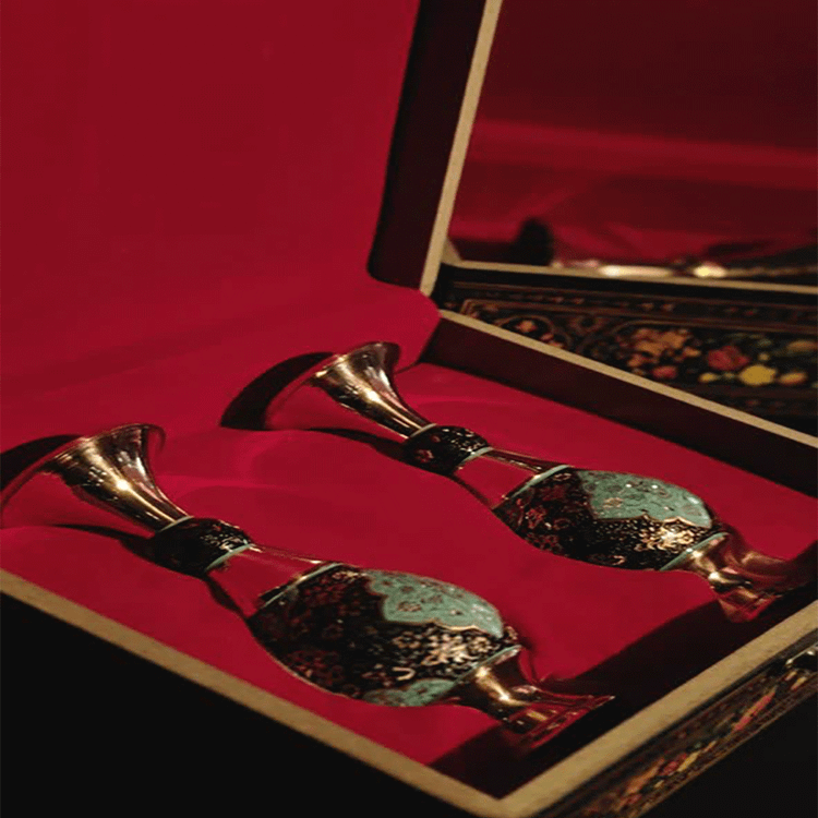 گلدان الماس تراش سبز با جعبه چوبی در سه سایز